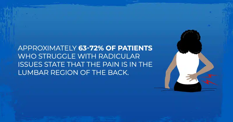 - Lower Back Pain: Since pinched nerves and irritation are typically situated in the lower back, people will likely feel lumbar radicular pain.